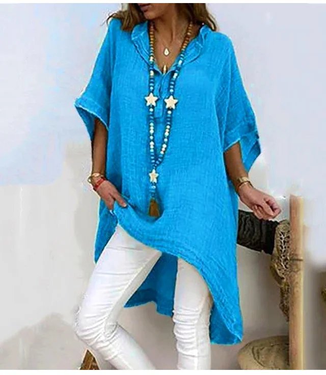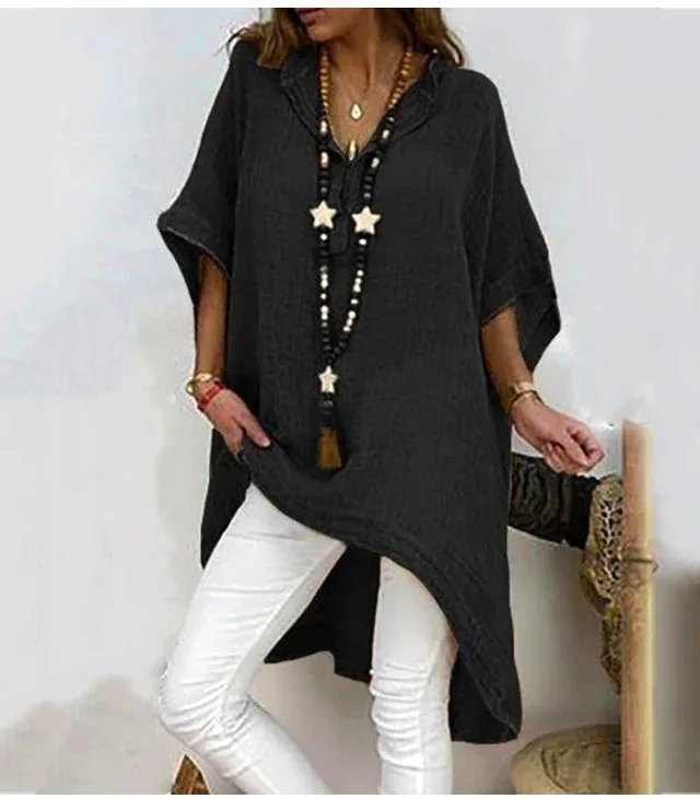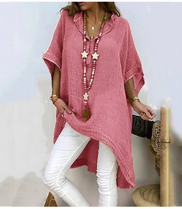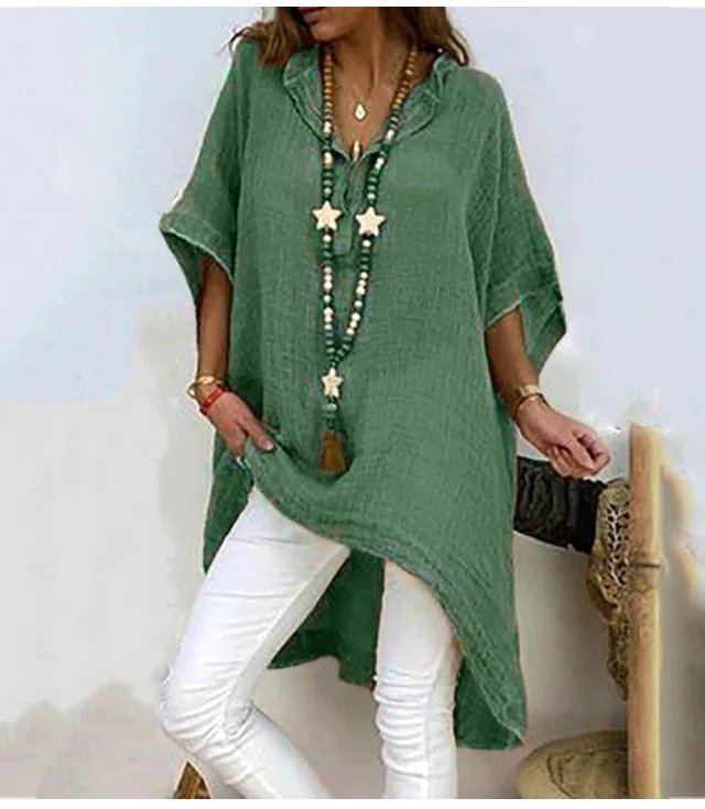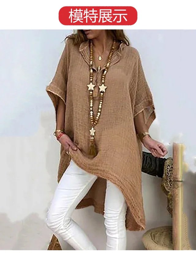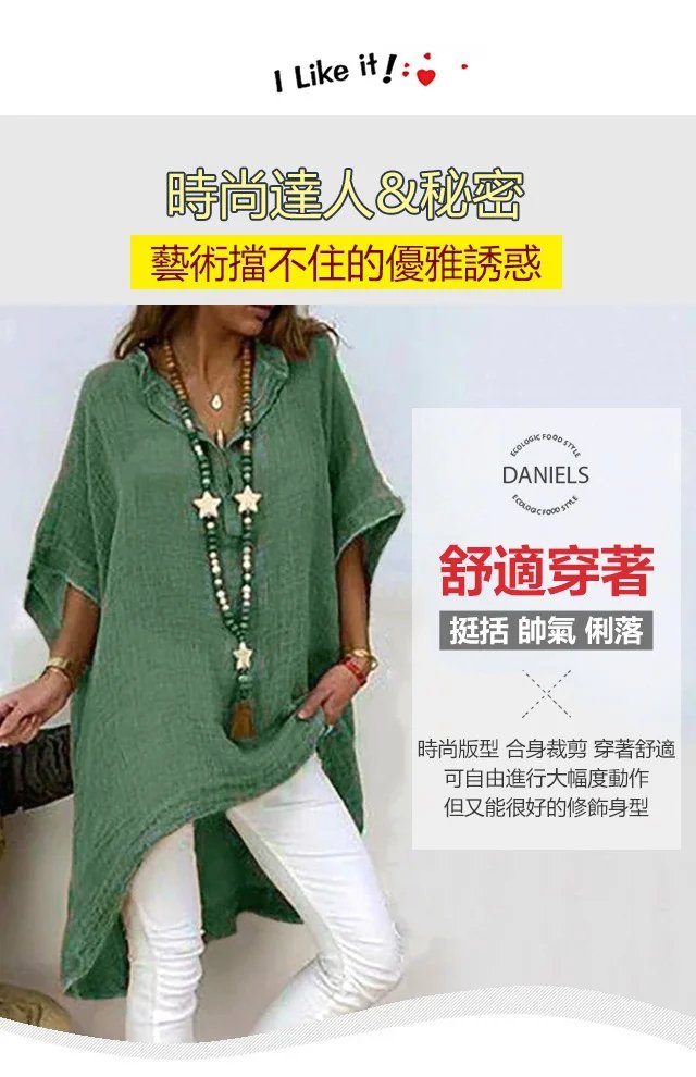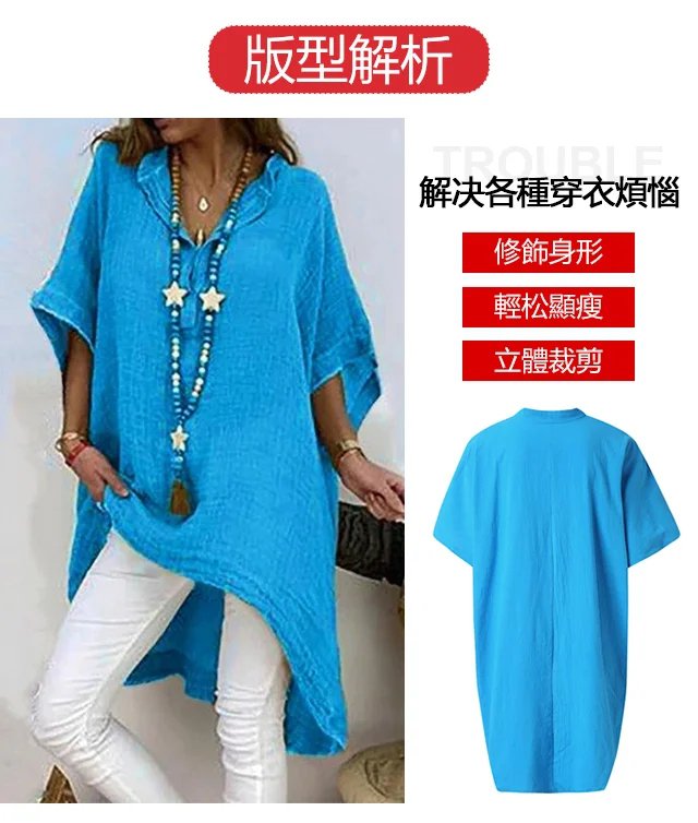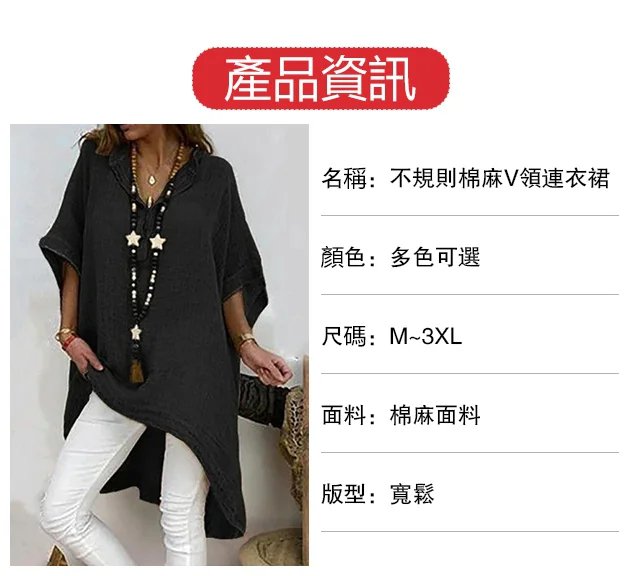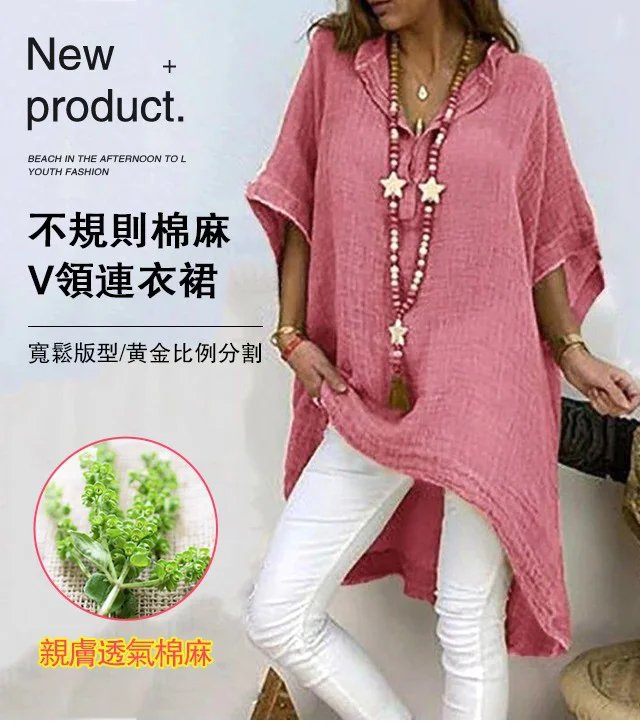 不規則棉麻V領上衣