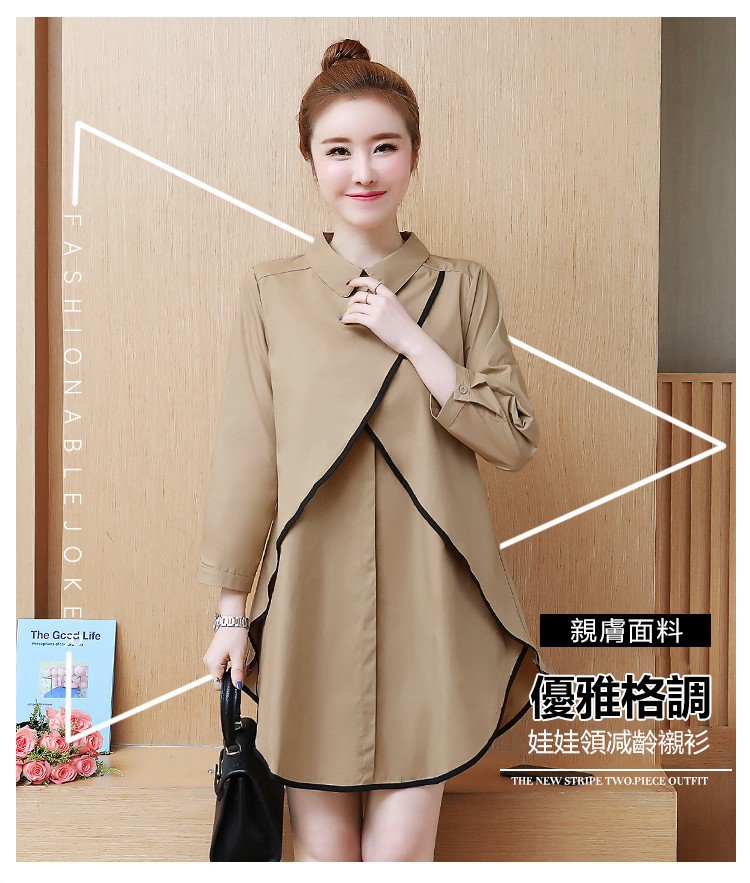 【限時下殺】第二件僅需四折!時尚顯瘦,清新娃娃領女式中長款襯衫,面料柔軟,舒適透氣!
